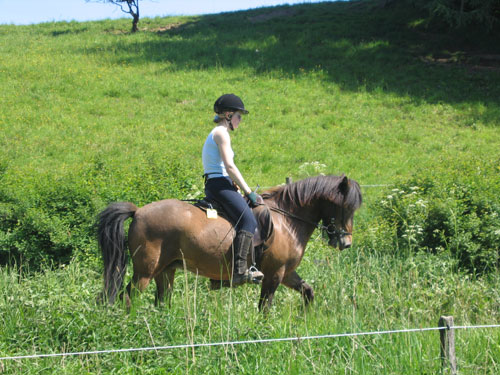 Nachdem sie einige Zeit wieder als Reitpferd eingesetzt wurde, ging sie 2011 wieder zum Hengst. Wir wählten den fünfgängigen Farbwechsler - Hengst Litfari-Vindskjoni vom Forsthof Nordhelle, der nun Vater unserer Fuchsfarbwechlerstute Hrima ist. 2014 wurde die Windfarb- und Smokey Black Scheckstute Jona von Rinkscheid von Kristall von der Rutenmühle geboren. Nun wird sie seit einiger Zeit wieder von uns geritten und bewährt sich auch als Reitschulpferd, wo sie besonders als Töltlehrpferd geschätzt wird.